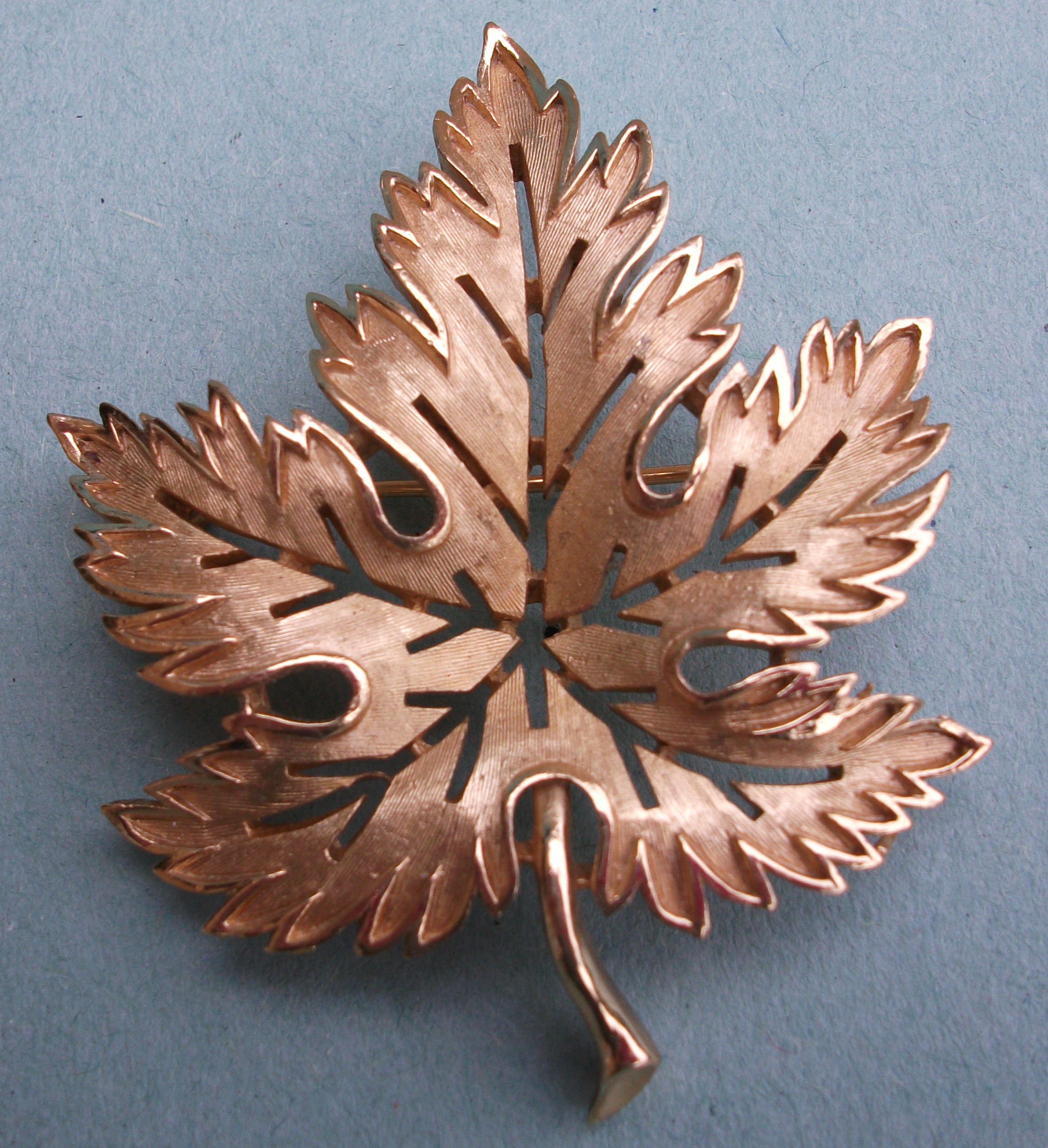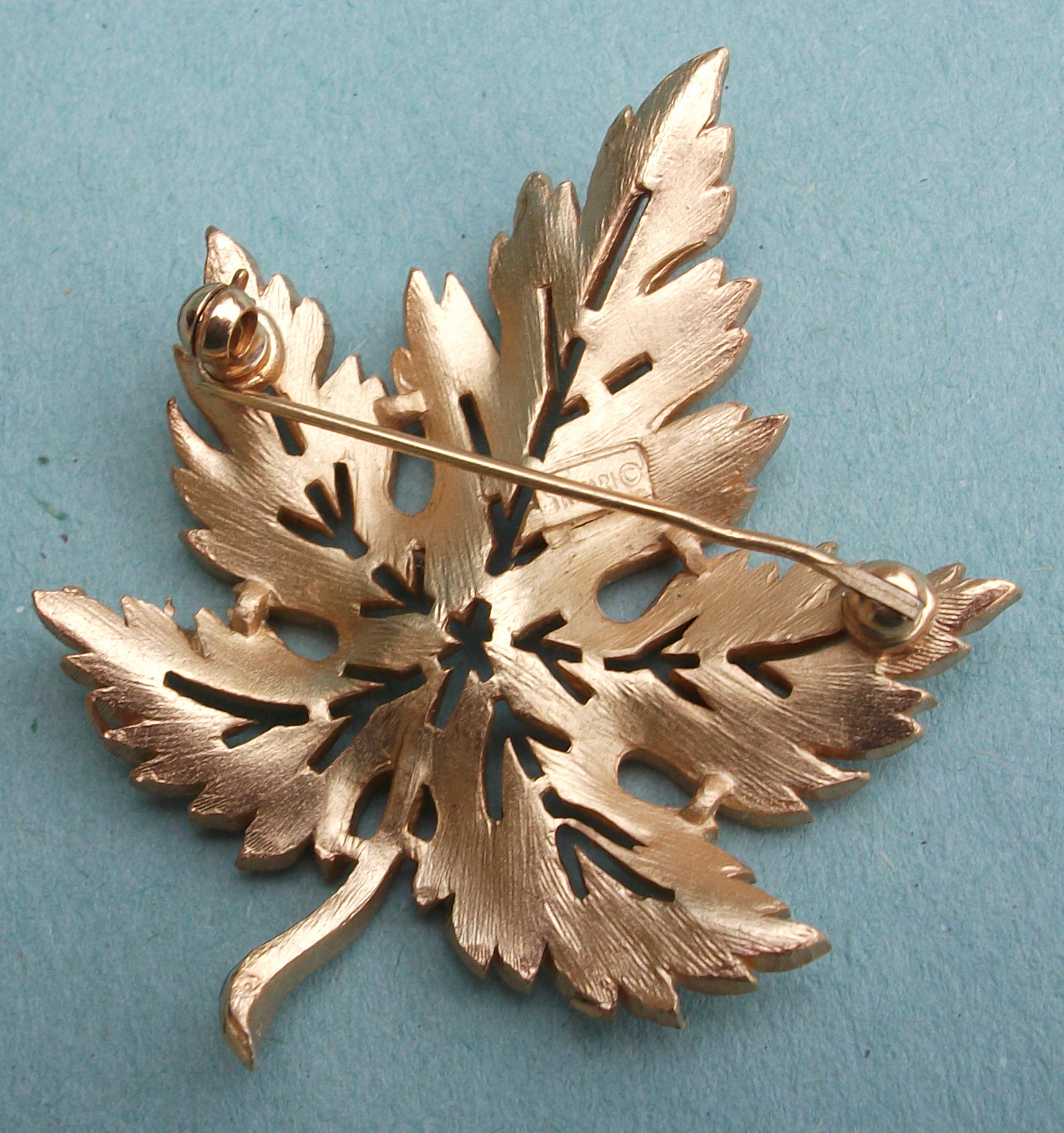 A truly stunning Crown Trifari Gold Plated Demi-Parure Autumn Leaf Brooch and Earrings.